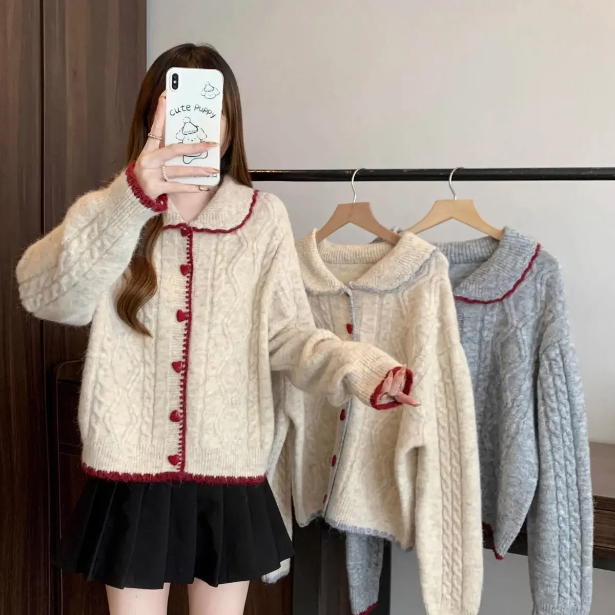 New Loose Sweater Autumn Winter Retro Love Button Knitted Sweater