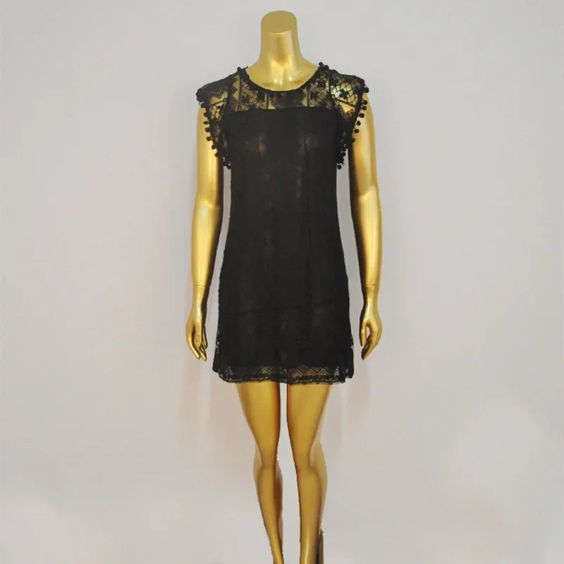 Beach Short Dress Female Sexy Tassel Mini Lace Dress