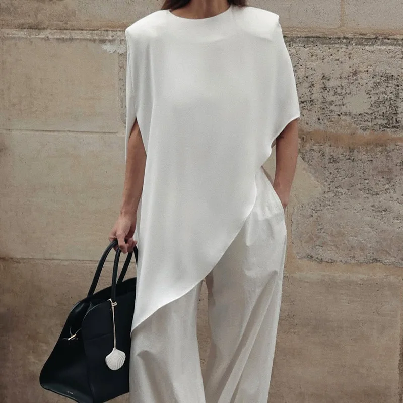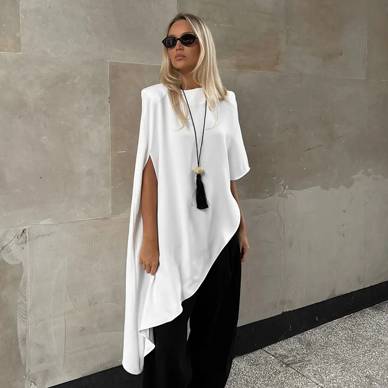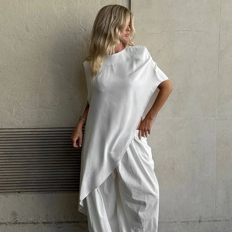 Woman Clothing O-neck Irregular Loose T-shirts