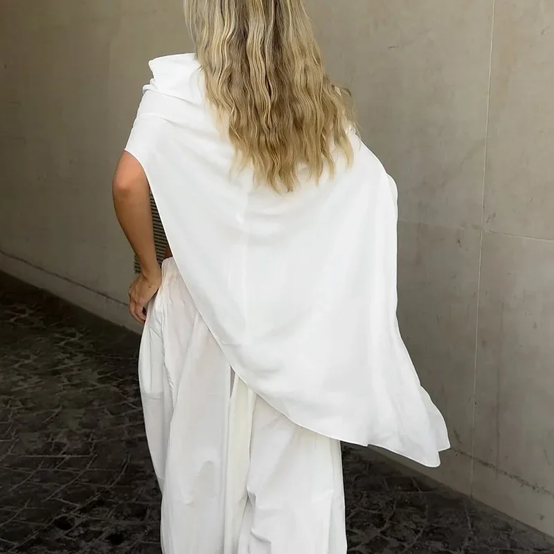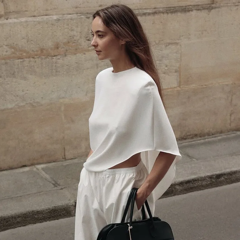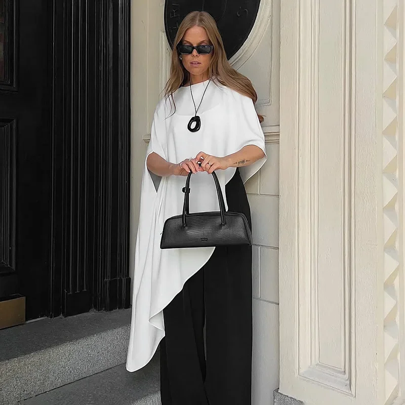2025 Autumn Female Clothing Shoulder Pads Solid Shawl Tops T Shirt Streetwear